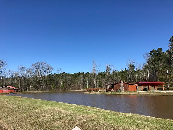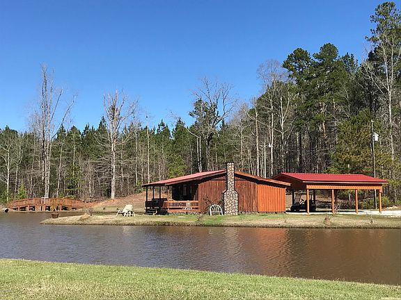 Peaceful get away- 2bed/1bath cabin with new laminate flooring, gas log fp, ample kitchen cabinets, LETO Series H/A- 24,000 BTU, cozy front porch overlooking the beautiful spring fed stocked pond, covered carport, approx. 150' deep well and a huge 40x50 shop with concrete flooring and power. Sitting on 2.7+/- acres. Agents see private remarks.