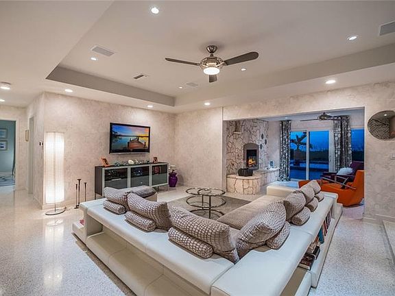Beach front Luxury in Anna Maria. This wonderful home sits right on the shores of Tampa Bay looking at the Sunshine Skyway Bridge. As you enter the home you are greeted with water views and polished terrazzo floors. The kitchen has custom cabinets with concrete countertops. The living room is open and accented with a coral lined fireplace. The main level also offers a master bedroom 2 guest bedrooms and separate entertaining area. Upstairs stars with a well equipped wet bar which leads into a modern seating area with gas fireplace. Step into the formal master bedroom with high ceilings and 2 walk in closets. The master bathroom has a free standing tub with full bay views, dual sinks, and double shower heads in the shower. All the rooms upstairs have motorized curtains and Nano doors that fold out and lead to the covered outdoor porch. The outdoor porch runs the length of the house and is a relaxing place to enjoy the panoramic views. The backyard was created as an Island oasis. The outdoor dining area is perfect for entertaining. The tropical, heated pool and spa is highlighted with gas fire pits and the yard is accented by landscape lighting. Enjoy the virtual tour to get a great feel for the home and call today for your private showing.