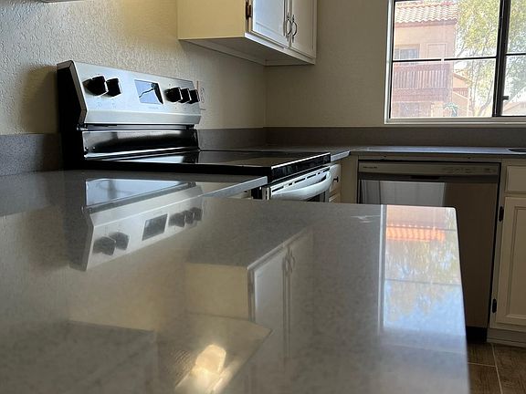 CHECK THIS BEAUTY OUT! Located in the beautiful Fiesta Park complex and Completely Remodelled! This single story, first level unit with a gated private unit entrance features a nice gated front courtyard. New Water Heater. New Tile throughout. Freshly painted New bathroom and shower and a Completely remodeled kitchen with new appliances. Also included are two assigned parking spaces, one of which is covered. Community pool for those hot AZ days. Close to freeway and easy access all over the valley. Landlord pays water and HOA Security deposit required Background check required through Zillow