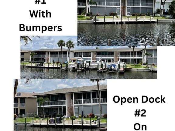 Welcome home to this gulf access condo on the 93ft wide Malaga Canal. Only 2 bridges by boat to the river. It is nicely updated with new kitchen, new bathes, impact windows and front entry door, electric roll down shutters on the lanai. There is a new roof going on now! A/C was new in 2017, replumbed in 2016, Electric panel updated in 2019. There are 6 ceiling fans. This condo is light bright and airy. Just steps from the pool where you will relax and enjoy the sun and boat traffic. There are two cantilever docks to choose form, one with rubber bumpers in place, covered parking and extra storage. Laundry is in the unit. Sit back on the screened lanai and enjoy lunch, dinner and a cocktail with friends. Water is included on the quarterly fee. Sorry no pets are allowed unless it is a service pet. 55+ community. You can rent for a max 4 months once per year. Easy walk or bike to everything downtown Cape has to offer. Don't miss out on this one! There is so much happening in the area! Great Condo in a great location.