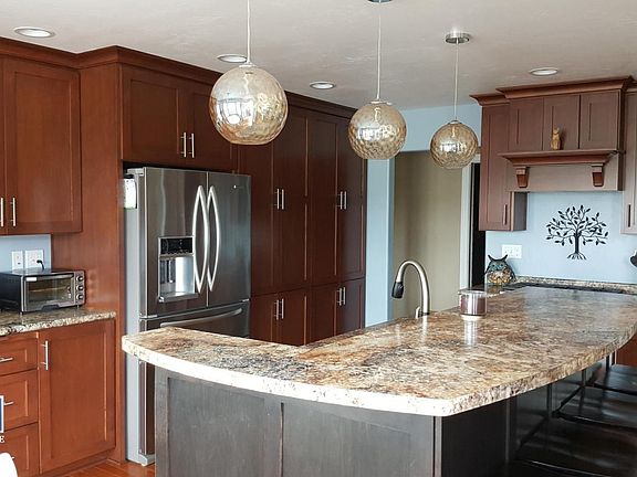 Spacious, modern and updated 4 bedroom, 3 bath, 3 car garage ranch home. Woodridge Subdivision far Northside Manitowoc. A Fantastic split bedroom design floor plan. A fully remodeled upscale kitchen with island and breakfast nook. Updated master bath has heated floor, double vanity with granite counter. Newer hardwood floors and carpeting throughout. Main floor laundry, 2 fireplaces, lots of storage, rec-room with walkout to patio. Home offers many indoor and outdoor entertaining areas. Easy access to I-43.