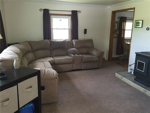 This is an adorable home! There is a cozy front porch, spacious living room with pellet stove, fully equipped eat-in kitchen, first floor laundry room and newer bath! This home offers a full basement, covered rear porch and producing berry bushes. There have been many updates completed including upgraded wiring, carpet, interior paint, exterior paint, basement paint, garage electrical service and more! You will love the 2 car detached garage and picturesque setting. This home offers an HSA Home Warranty and is ready for occupancy!