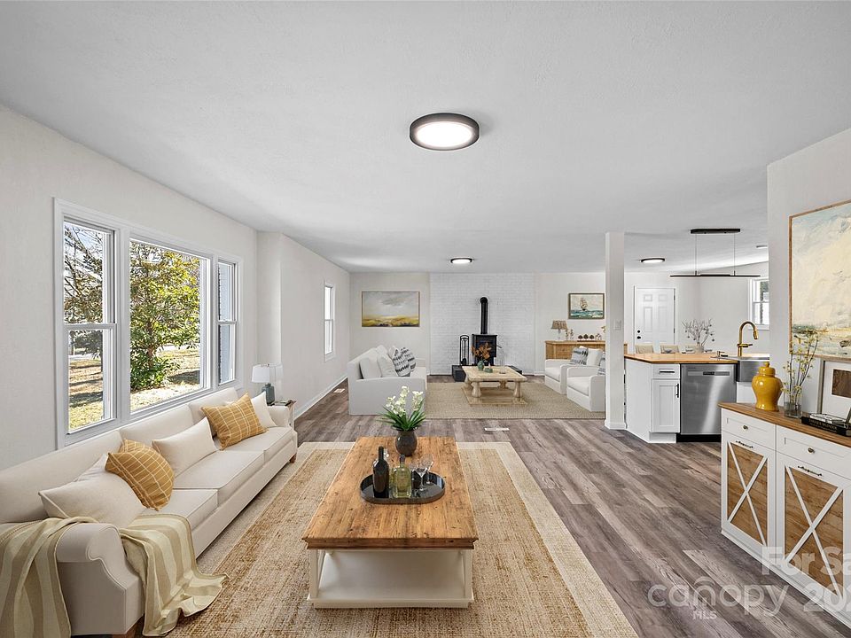 THIS HOME IS ELIGIBLE FOR UP TO $12,500 DOWNPAYMENT GRANT. Embrace serene living in this 3BR/1BA ranch at 818 Sparrow Springs Rd, beautifully remodeled with no HOA. Boasting a custom kitchen with butcher-style counters and stainless appliances, new flooring, and AC. The heart of the home features a wood-burning stove, framed by stunning Crowders Mountain views. Enjoy a spacious 1,500 sq. ft. interior on a 0.4-acre lot, minutes from I-85 for easy commuting. A perfect fusion of modern updates and peaceful surroundings.