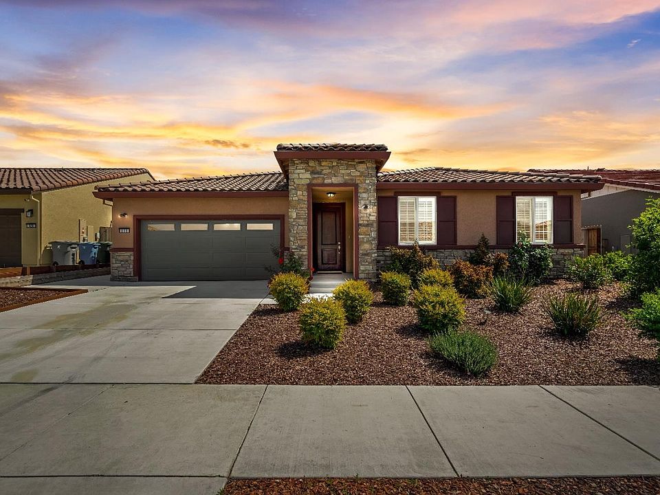 Sensational single-level living in Hollisters Bennett Ranch, an enclave of 84 homes tucked along Southside Road bordering open space. Like-new, move-in ready condition. Meticulously maintained. Light-filled interior. W/in 2 mi of Hiway 25, 3 mi to downtown & Ridgemark Golf Club & Resort. Built by K. Hovanian Homes in 2020 showcases new front and backyard landscape, hardwood & carpeted floors, plantation shutters, coffered ceilings, recessed lighting. 2308+/-SF on 7300+/-SF level lot. 4 bdrms. 2.5 bths. Great rm w/backyard views is open to casual dining area & chefs kitchen w/quartz counters, decorative tile backsplash, island/breakfast bar, stainless apron sink, walk-in pantry, stainless appliances include dual ovens, gas cooktop, refrigerator, microwave, dishwasher. Formal dining rm w/coffered ceiling. Primary suite in private wing. Walk-in closet. En suite w/dual-sink vanity, shower, separate tub. 3 addl bedrms share spacious bathrm w/dual sinks, tub/shower combo. Walk-in closets. Sprawling backyard patio, terraced garden on gentle slope, new concrete side yards, fruit trees, pergola. Enjoy easy access to Hiway 25, shops, restaurants in downtown Hollister. Nearby Pinnacles National Park, 43 +/-mi to Monterey, 20+/- mi to Gilroy. 2-car garage. HVAC. Indoor laundry rm.