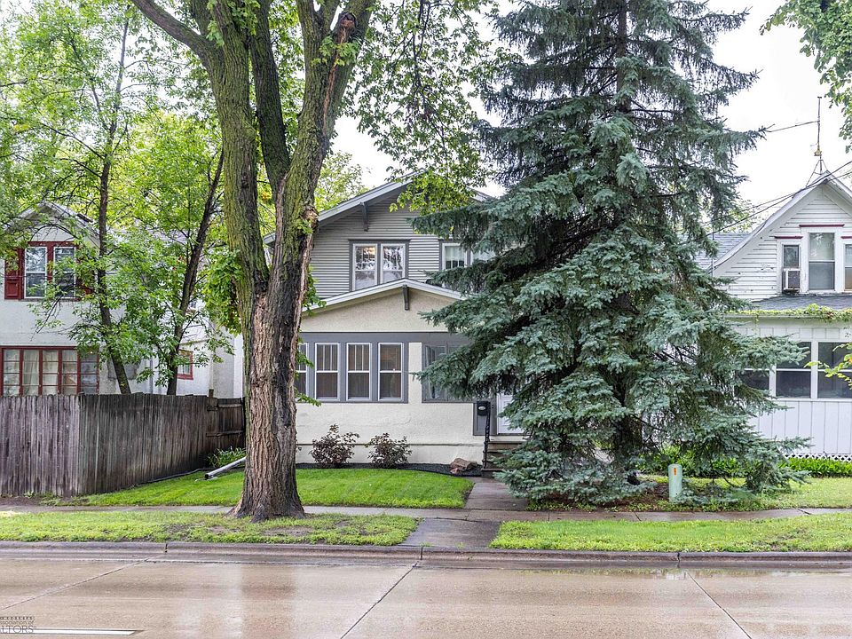 This historic home has been impeccably maintained and updated. The main level features gorgeous hardwood floors, original trim, and large arches transitioning from the dining room which has great natural light to the spacious living room and into the office/flex space. The kitchen has been updated with beautiful dark cabinetry, stainless steel appliances, deep double basin stainless steel sink, pantry, and the breakfast nook is complete with a small TV on a swing mount. All three bedrooms are conveniently located upstairs. The primary bedroom has a walk-in closet, a balcony patio overlooking the back yard, perfect for sitting with your morning coffee. The second and third bedrooms are large with nice-sized closets. The bathroom has tiled floor, tub/shower and quartz countertop vanity. The basement includes a laundry area, storage, a partially finished sauna and room to expand if needed! This house has a total sq ft of 2,178 with 1,419 finished sq ft. Outdoors you'll find a partially fenced yard, nice landscaping, a patio area, and an oversized 2-stall garage with alley access! This one is move in ready, make it yours today!