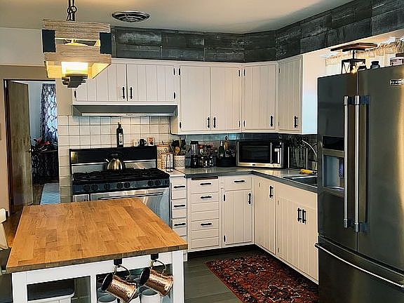 1957 Mid Century Ranch home with only two owners. 3 bedrooms / 2 full bathrooms. 2 car garage with work area and sink. Hardwood floors in family room, hall, and all bedrooms (master bedroom is currently carpeted). Bamboo hardwood in dining room and kitchen. Wood burning fireplace. New metal roof put on in April 2022. New furnace, water heater, plumbing and air conditioning. Updated bathroom and kitchen. Spacious covered back porch. Large backyard with pretty views. Very clean basement with work bench, laundry area, bathroom, possible future recreational room and large walk in pantry.