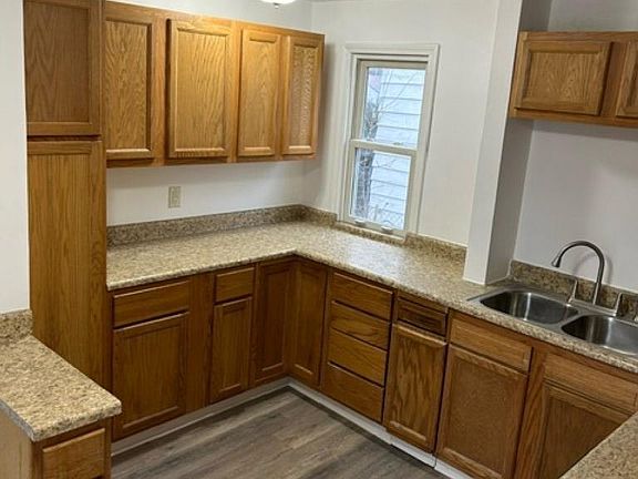 Why rent when you can own? You'll love this REMODELED home with garage! Bigger than it looks- not a drive-by! This home has a great layout with a very nice enclosed 20' front porch, large living room, den and even a separate laundry room. The oversized GARAGE offers a workshop and alley access. Beautiful hardwood floors in the bedrooms. New flooring throughout the rest of the home. Nice kitchen with lots of cabinets. Newly remodeled bath with built in's. Home has fresh paint throughout with updated lighting . Fenced in big back yard. Ready to move right in!