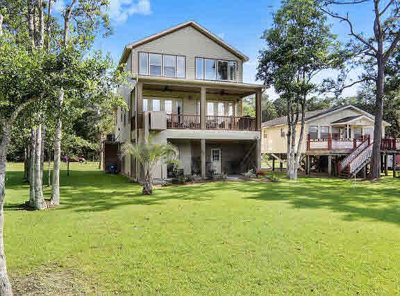 Newer WATERFRONT home on the Intracoastal waterway.Move-in ready with all the furnishings(see exception list).Main floor has open floor plan with tall ceilings, crown molding, large baseboards, granite counter tops, oil rubbed bronze fixtures and hardware,custom window treatments,and tile throughout.Kitchen has all stainless steel appliances and pendant lighting over bar seating.Master suite with king bed,walk-in closet,large custom tile shower and double sinks.Large laundry room with full size washer and dryer and built in stainless steel sink. Upstairs has two bedrooms,full bathroom & large loft overlooking living room.Double french doors in the living room and master bedroom give access to covered balcony with 2 ceiling fans and plenty of room for outdoor entertaining.Tiled private back porch with platform lift provides access to balcony & beautiful views of water.Dusk to dawn outdoor lighting.Great home to live full-time or second home.Lot next door also available for purchase.
