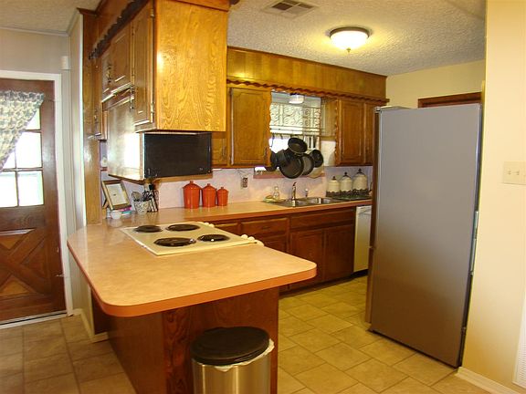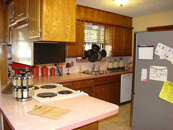 Smart and sassy home with open floor plan and decorator touches. New paint. New pulls and handles. Kitchen with breakfast bar, Frigidaire stove with self cleaning oven. Newer space saver microwave. New garbage disposal, 2016. Maytag dishwasher. ADT alarm on all doors, and motion detectors. New roof July 2016. Cool Temp siding, 2016, north & south ends of home. Utility room with good storage - 8 cabinets. Fireplace in family room with cabinets & bookshelves. Breakfast bar and separate dining room open to family room. Two versatile, nice sized bedrooms and a spacious master bedroom with a 3/4 bath. New springs on overhead garage door. Garage with large work bench with sink. Inground storm cellar. Two sheds in backyard. Attic access in garage with pull down ladder. Garage opens to side on corner lot.