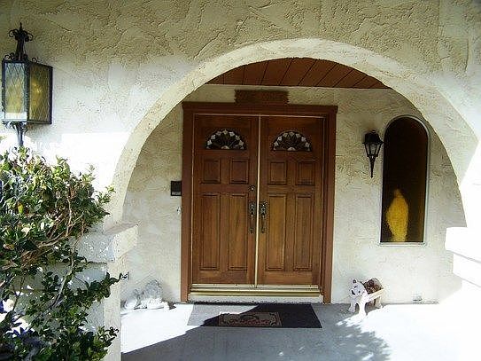 BACKYARD PARADISE! Red tile roof. Santa Fe arches with beautifully maintained front landscape. Double front doors lead to a sunny living room that turns into a formal dining room with a classic chandelier. Kitchen is wide and bright everywhere with views out into a spectacular backyard. Kitchen has full appliances and tile counters. Family area with rich dark wood ceiling beams, red brick fireplace, and built-in book shelves. All three upstairs bedrooms are wide and roomy. Master bedroom offers morning sunlight with balcony overlooking the front street. Out back: customized landscaping set up like a private park! Full length covered arched patio, extended patio for entertaining, lush green grass, pines, and shrubs, and that brick archway! Serene enough for an outdoor wedding! Home, roof, and termite inspections complete! Priced below the others to sell! Great location and the basic glitter ready to be spiffed in order to make it your own! DON'T MISS THIS BARGAIN! GREAT BUY FOR THE SIZE AND LOCATION!