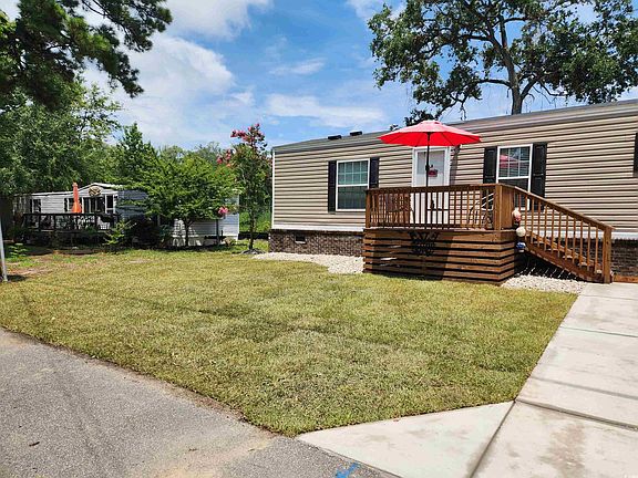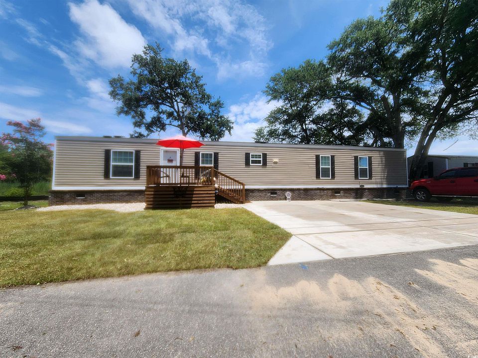 Beautiful, well maintained Single Wide mobile home located in The Grove in the Cherry Grove section of North Myrtle Beach. Two master suites. Open floor plan, living/dining/kitchen combo. 9' ceilings. Utility room with laundry. Washer and dryer included. New 8x10 front deck built in 2023. New concrete drive with 2.5 parking and sidewalk installed Summer/Fall 2024, new front yard/side yard sod installed Fall 2024. 6x4 stoop on back entrance and a 10x10 paver patio. Conveniently located within a mile of the ocean, just off Sea Mountain Highway, near grocery stores, restaurants and entertainment. Neighborhood with manufactured and stick built homes and NO HOA. Title to the home has been retired in 2022. Seller is related to SC RE agent.