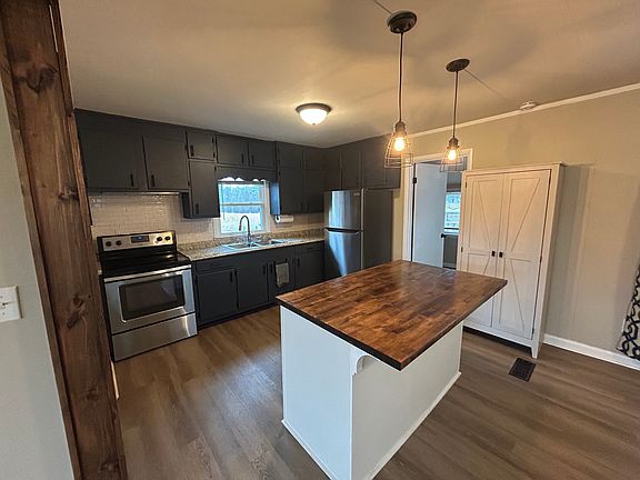 Freshly remodeled home in Union Grove area on quiet road (10 minutes to Arab, 15 minutes to Guntersville, 25 minutes to Huntsville). Open layout with living, dining, and kitchen, and office. 3 bedrooms and 2 1/2 baths. LVP in all living areas and carpet in bedrooms. Laundry room off kitchen has extra storage space for deep freezer, etc. Home has security system. Wood deck was just replaced and sealed. Fenced in backyard. - Homeowner will include grass mowing and pest service in rent. - Electric, water and trash to be paid by renter. - 12 month lease.