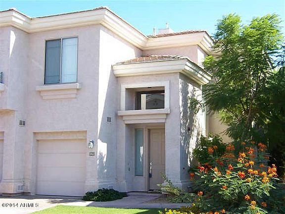 Located in an intimate, luxe community of less than 100 townhome/condominiums, this beautiful and immaculate, upper end-unit features a split floor plan and is perfectly situated within the community, allowing for quiet enjoyment. *Gated community *Light and spacious Great room with gas fireplace & built-in media center. *Sunny kitchen with top-of-line appliances, gas cooking, refrigerator, walk-in pantry & breakfast bar. *Large master suite w/home office area, large walk-in mirrored custom closet, double sinks, & linen cabinets. *Second bedroom has walk-in closet with customizable shelving. *Second full bath with tub/shower & linen cabinets. *Spacious laundry room with built-in cabinets and new full-size washer/dryer. *Massive walk in storage closet w/ customizable shelving on main floor. *Large deck off Great room *Single-direct access garage - New tile flooring throughout - New air-conditioner w programmable thermostat - Neutral two-toned paint and carpet scheme - Ceiling fans throughout - Water and trash collection included - Community year-round heated pool, spa and BBQ - Alarm wired Corner of Shea and Hayden, at entrance to McCormick Ranch. Super easy freeway access. Close to shopping, golf, restaurants, Fashion Square, Kierland Commons & Scottsdale Quarter.