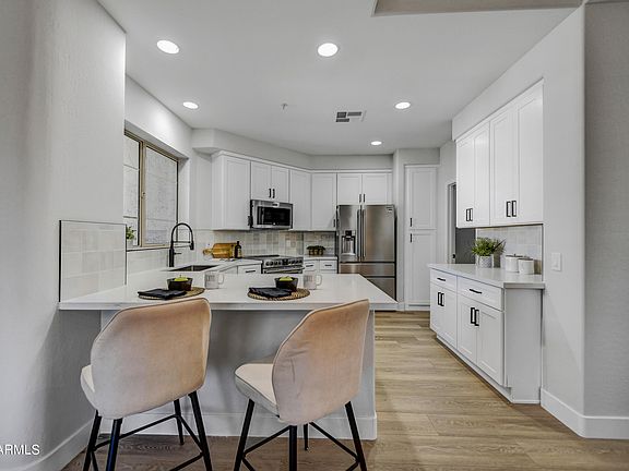 Welcome to a haven of modern luxury in Scottsdale! This recently remodeled 3-bedroom, 2-bathroom condo spanning 1,775 square feet offers a truly exquisite living experience. Step into the gourmet kitchen, adorned with white cabinets and quartz countertops, featuring high-end appliances that cater to the most discerning chefs. The luxury vinyl plank flooring seamlessly connects the open living areas, filled with natural light and contemporary design. The master suite, accompanied by an elegant bathroom, provides a serene retreat, while two additional well-appointed bedrooms offer flexibility. This residence is nestled in a gated community, ensuring privacy and security. A two-car garage adds convenience to your lifestyle, and the new AC unit ensures comfort year-round. Conveniently located close to the freeway and shopping centers, this condo invites you to experience the pinnacle of modern living.