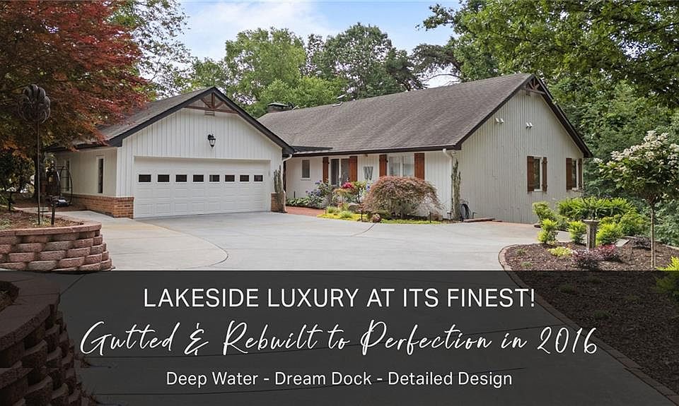 AMAZING OPPORTUNITY! PRICED BELOW APPRAISAL. Lakefront Luxury Living at its Finest! Top-of-the-Line 2-Slip Deep-Water Dock with Party Deck & So Much More! Nestled on a quiet, secluded cul-de-sac lot with an amazing deep-water dock, this fully remodeled lakefront retreat was rebuilt from the studs up in 2016, featuring timeless design, high-end finishes, and modern comforts throughout. The centerpiece? A top-of-the-line 32' x 32' premium Martin aluminum 2-slip dock with party deck, the largest allowed on Lake Lanier, featuring Trex decking, electricity, lighting, water pump, Tritoon boat lift, dual jet ski ports, and a huge upper party deck. A 40-ft gangway with side rails leads to calm, swimmable water only minutes from the open lake and lakeside restaurants. Inside, the main floor offers soaring tray ceilings, abundant recessed lighting, hand-scraped hardwood floors, and custom trim throughout. A welcoming great room centers around a raised-hearth wood-burning fireplace with gas logs, flanked by beautiful built-in bookcases. The open-concept dining area seamlessly flows into the main living space, easily accommodating eight or more guests and providing a welcoming setting for everything from casual dinners to festive lake gatherings. The adjoining sunroom captures peaceful treetop views year-round. The chef’s kitchen is both functional and elegant, featuring Thermador appliances, an oversized leathered granite island, a beverage fridge, a walk-in pantry, spice drawers, an appliance garage, and stylish custom cabinetry! An oversized Trex grilling deck with a propane gas hookup is just steps away for easy entertaining. The spacious owner’s suite is a restful escape, complete with a custom closet and spa-style bath featuring whitewashed wood walls, marble finishes, a deep free-standing soaking tub, and an oversized walk-in shower with a ceiling-mounted rain head. A luxurious guest suite on the main level includes its own private full bath and walk-in closet. Downstairs, the terrace level is built for fun and functionality: a second wood-burning fireplace with gas logs framed by custom built-ins, enormous family room, full kitchenette (with soapstone countertops, dishwasher drawer, undercounter microwave drawer, full-size fridge, and more), two more bedrooms (each with direct outdoor access), two exceptional full baths (including one with exterior entry for lake days), a fabulous flex room for a home office, gym, or bunkroom, and a large storage room perfect for lake gear or future wine cellar! Wide-plank luxury vinyl floors handle water and wear with ease! Extras include: spray foam insulation, 3 HV/AC zones, central vacuum system, two security systems (one per floor), Starlink internet access, custom closets, 5-zone irrigation system, fresh paint inside/out, and professional landscaping. Located in low-tax Forsyth County with a Gainesville address. This is turnkey lakefront living at its best. Schedule your private showing today and start living the lake lifestyle you've dreamed of, just in time for the best of the season!
