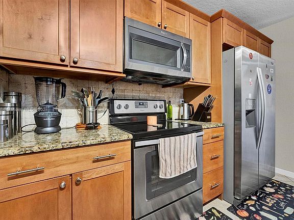 Location, Location, Location! This rarely available, beautifully remodeled 3br/2.5 bath townhouse sits in a family friendly neighborhood in Boca Raton and is move-in ready. It's kitchen is equipped with stainless steel appliances, granite countertops, maplewood cabinetry with pull out shelving and soft slam drawers and cabinets. Large tile flooring throughout the first level. A Stunning espresso wood laminate flooring on the 2nd level. The oversized master bedroom has double walk-in closets with custom built-in shelving, a broad master bath with lots of custom cabinetry, dual sinks, granite counters and a huge roman tub. The master and secondary bedroom has sliding glass doors that leads to a cozy dual balcony. A+ schools You don't want to miss the opportunity to make this house your home.
