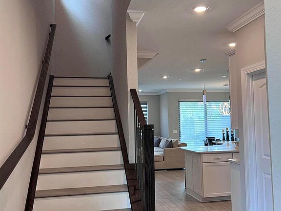 This beautiful home was built in 2021 and owner occupied who kept it in nearly new condition. The modern open floor, white kitchen has lots of cabinets for storage, large quartz countertops, upgraded appliances and tiles. From the living room you will have access to enlarged and very PRIVATE backyard that is FENCED IN. There is also a half bath downstairs. All three bedrooms are upstairs. There is NO CARPET, laminate floor was just installed in May. Master bedroom has HIS and HERS CUSTOM MADE CLOSETS, as well as second bedroom. There is plenty of storage throughout the house. Window treatments are also CUSTOM. The garage fits two cars and equipped with shelves and flooring.The Fields community is family friendly and fun to live in. The community has state-of-the-art amenities : two