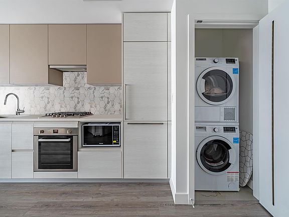 The most efficient 1 bedroom and den floorplan with large 67sf outdoor balcony at Fraser Commons. BRIGHT south exposure w/ views of the city and river. Fully air-conditioned home featuring gas stove and fully integrated Bosch appliance package. Central location close to Superstore, Marine Gateway, Sunset Community Centre, YVR, shops/restaurants along Fraser and more. Amenities include exercise gym, rooftop terrace, party room and concierge. No parking, external storage included. Tenanted month to month at $2300/month.