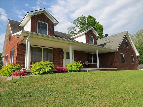 Lovely 3BR, 2.5BA brick home set back from the road, on 3.84 AC. Built in 1999, this home has hardwood flrs, spacious, open concept main flr; vaulted ceiling to upper loft area; finished walk-out bsmt. Small fenced area behind house for children or pets; remainder of land is open grassy pasture. 2catt fin garage. 2+cdet garage, w/workshop/living area; sep septic; elec & water. Pole barn w/horse stalls, RV bay, elec & water.