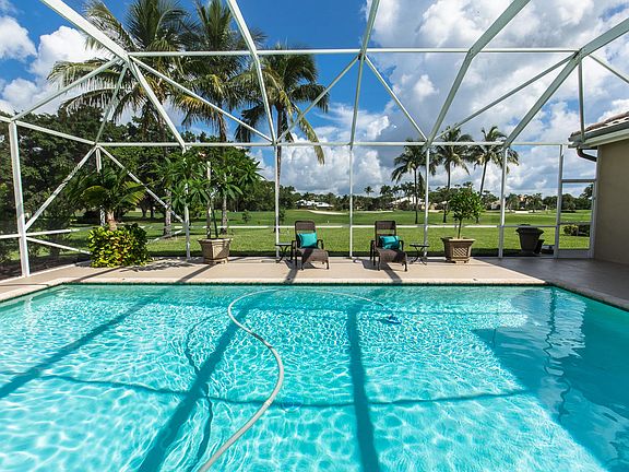 Spectacular curb appeal with this 4 or 5 BR/ 3.5 bath well maintained home. Large Circular drive lined with majestic Royal Palm Looking trees. Extensive landscape lighting makes this a showplace at night.Panoramic golf course views from the screened pool/patio area. Tile floors on a diagonal in the living areas and wood floors in the bedrooms. Crown molding everywhere finishes the luxurious interior. Freshly painted inside & out. Oversized 25 foot deep, 3 car garage with $8,000 of custom garage cabinetry and finished, epoxy garage floor. Spacious kitchen, family & living room make this the perfect home for entertaining. The kitchen features newer SS appliances, double ovens, granite counters and pantry with pull out drawers. Master bathroom dbl. vanities, spa tub &remodeled shower.