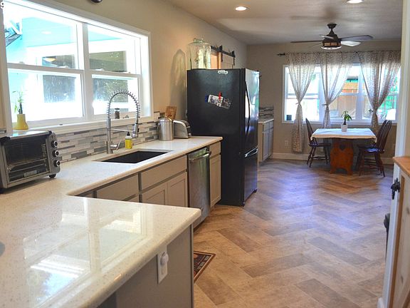 Amazing views of the lake & mountains!Gorgeous & updated farmhouse w/so much new is a rare find!Great floor plan w/2 master suites!Delightful kitchen w/quartz, propane/gas stove & great space for entertaining family & friends. Barn 30' x 60', Shop 28' x 48',fabulous garden area,new septic/leach field,heated pump house,RV hookups to septic & 50 amp power plug & so much more!Acres of paradise that borders creek.A must see!