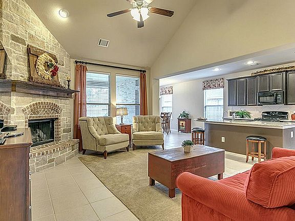 Impressive 5/3/2 Highland home boasting 2 bdrms/2 full baths down. Inviting floorplan features an extended foyer, open kitchen w/granite island, black appliances, chef's desk, gorgeous stone & brick fireplace. Spacious master bedroom w/high ceiling. Tile thru-out 1st floor; NEW upgraded carpet 3/22/2014 (stairs & up). Game-room (fan installed after photos) & a FABULOUS media room up! Covered back porch w/fan. Across the street from Preserve Park & close to the pool! 24/7 patrol security.