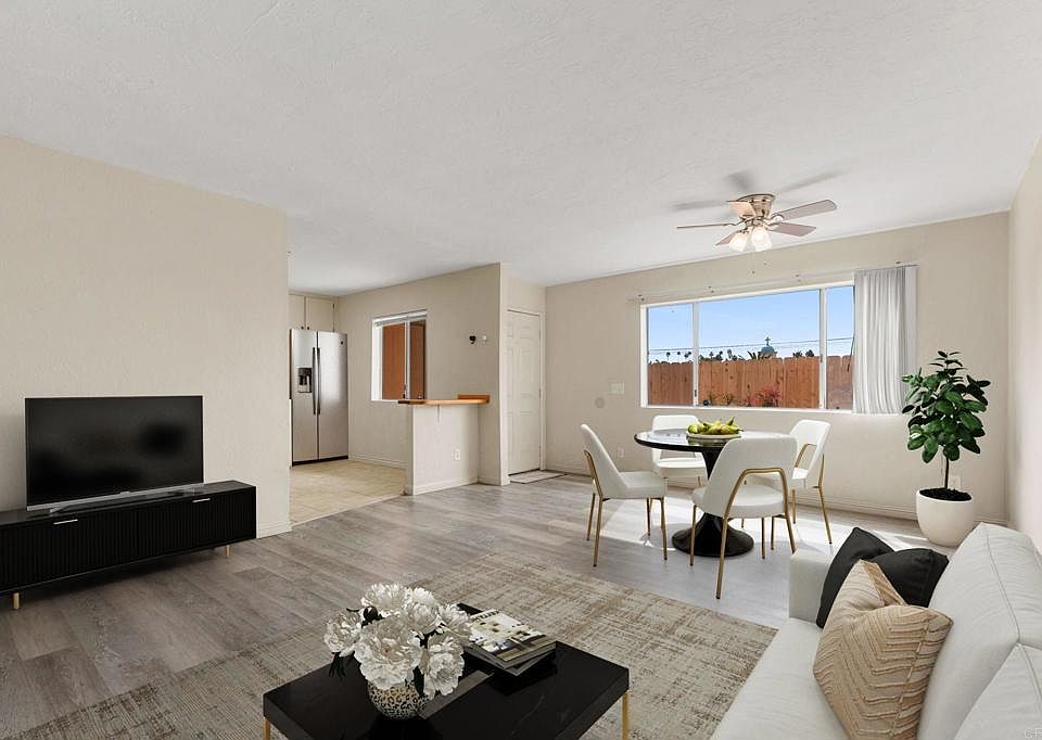 VA APPROVED CONDO! And this condo also qualifies for the COMMUNITY LENDING & HOME RUN PROGRAMS. Save money on down payment and monthly mortgage with a Conventional Loan Program offering a better rate than a standard conventional. These programs are available for both first time and repeat homeowners. Ask your agent for more information! This charming ground floor condo effortlessly combines comfort, style, and convenience by including 2 assigned covered parking spaces, private storage right next to the unit, rooftop patio, and a park directly across the street offering a tot lot, spacious grassy area with picnic tables & a basketball court! Plus with easy access to highway 94, you're just a short drive from all the excitement San Diego has to offer. This lovely condo in the Hilltop Community is the perfect place to call home. Step inside to a bright and welcoming living area, highlighted by a freshly painted ceiling that enhances the natural light. The open floor plan seamlessly connects to the kitchen featuring ample cabinet & counter space for all your culinary adventures. There's even room for a coffee bar or wine fridge to add a touch of personal flair. Relax in the spacious living area, enjoy casual meals or host get togethers in the dining/living area. With two cozy bedrooms, you'll have plenty of room to unwind. The updated bathroom offers modern fixtures and a touch of luxury. Once again highlighting the private storage space, perfect for keeping your belongings organized; assigned covered parking for two cars makes parking a breeze. Savor your morning coffee on the rooftop patio, or take a leisurely stroll to the park just across the street. Schedule your showing today and experience the best of Southern California living!