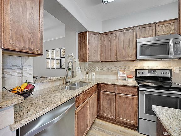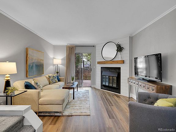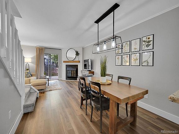 Beautifully renovated, unquestionably charming south-facing townhome in the desirable Centennial Heights neighborhood! Perfectly located with easy access to University Blvd and County Line Road, this home offers an unbeatable Centennial location with enviable updates and thoughtful styling throughout. The living room offers a cozy space to relax and entertain, with a wood-burning fireplace beautifully accented with crisp white shiplap and a modern rustic wood mantle. Enjoy easy access to the patio from the family room, perfect for indoor-outdoor living. Beautiful luxury vinyl plank flooring throughout the main level offers easy upkeep and unmatched styling. Step into the stylish kitchen, featuring warm wood cabinets, sleek granite countertops, stainless steel appliances, a beautiful tile backsplash and a convenient breakfast bar. Don't miss the main-level half-bath, and main-floor laundry room! Upstairs, the primary bedroom boasts a vaulted ceiling, a ceiling fan, and an updated ensuite bathroom with dual sinks. The upstairs bathroom also offers convenient hall access. Outside, you'll find a small, fenced area with plenty of decking—a great spot for entertaining or enjoying time with furry friends. This community offers fantastic amenities, including walking access to a dog park, a greenbelt, and a large park with a playground. Plus, there's ample visitor parking and a community pool for residents to enjoy. Located close to Park Meadows, the Streets at SouthGlenn, and C-470, this townhome also offers excellent investment or rental potential. Welcome home!