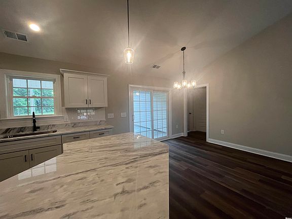 This new construction home features 4 bed and 2 bath with all LVP flooring and granite countertops throughout. The kitchen boasts a lovely, vaulted ceiling, and open concept to the living and dining areas. Stainless steel appliances furnish this beautiful kitchen with soft close cabinets, tile backsplash, kitchen island, and pantry. The master has tray ceilings and separate his and hers closets in the spacious master bathroom. The master bath also features a double vanity, soft close cabinets, linen closet and shower. This split bedroom plan has 3 guest bedrooms with a guest bath offering soft close cabinets, and tub/shower combo. Outside enjoy your large covered screened back porch in this lovely county setting on .76 Acre with NO HOA! Call today and ask how you can make this your future homesite. ** Pictures are from a previous built home, same floor plan**