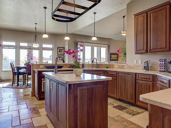 This nearly 8,000 square foot home is an entertainer's paradise featuring 5 bedrooms, all with en-suite bathrooms and large walk in closets, plus 2 additional bathrooms. The main floor includes a gourmet kitchen with marble travertine counters, family room with gas fireplace and vaulted ceiling, large study with built in book cases, main floor laundry and 2 bedrooms, one of which is a main floor master. There are 2 stairways to the upper level which features an oversized bonus/play room, 2 large bedrooms and a large open loft. The basement provides 2,800 square feet of additional living space and features a full bar with marble travertine counter tops, spacious theatre room, an additional bedroom which could easily be utilized as in-law quarters. The home is situated on an acre lot that has been professionally landscaped and includes a sport court, volleyball court, trampoline, splash pad, horse shoe court, built in gas grill with stone counter tops, gas fire pit and water feature.