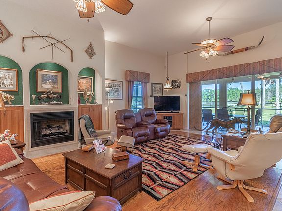 GATED 10 ACRE FARM WITH STOCKED POND WITH FOUNTAIN. 2 VERY WELL MAINTAINED HOMES ON THIS BEAUTIFUL FARM SETTING. HOME IS OPEN WITH HUGE KITCHEN AND LIVING AREA FOR ENTERTAINING OR FAMILY GATHERINGS. KITCHEN HAS CUSTOM CABINETS WITH ROOM FOR 8 BARSTOOLS AND AN ISLAND. PANTRY HAS BUILT INS. CIRCULAR DRIVEWAY WITH 3 CAR GARAGE. HOME HAS GENERATOR AND STORAGE SHED.3 HVACS ENTER THROUGH SCREENED PATIO TO VIEWS OF POND AND PASTURES. MAIN HOME 2793 SQ FT HAS CATHEDRAL CEILINGS AND QUALITY IN THIS ONE HIS AND HER OFFICES. OWNERS SUITE HAS SITTING AREA. MASTER BATH HAS DOUBLE VANITIES WITH TUB & SHOWER. WALK IN CLOSETS. LARGE SCREENED IN LANAI OVERLOOKING ALL OF FARM. GUEST HOME IS CBS 1974 SQ FT IT HAS OPEN FLOOR PLAN PERFECT FOR GUESTS OR ADDITIONAL FAMILY WITH 2 CAR GARAGE ,SCREENED IN LANAI