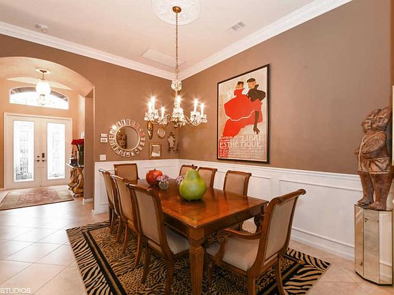 Don't miss this gorgeous highly upgraded home on a beautiful private water lot. Ceramic tile on the diagonal, 7 inch crown molding throughout, wood cabinets in the kitchen with granite counters, pullouts and glass tile backsplash. Under cabinet lighting, stainless appliances with a French door refrigerator. Master closets have ''California Style'' systems. Master bath has wood cabinets, granite counters with granite vessel sinks and framed mirrors. Guest bath has wood cabinets with granite counter and granite vessel sinks with a framed mirror. All bathroom fans are replaced with quiet fans. Laundry room has sink. Upgraded landscaping, hurricane accordion shutters and a large screened-in extended patio to enjoy the serene water views. This home has it all and is move in ready.