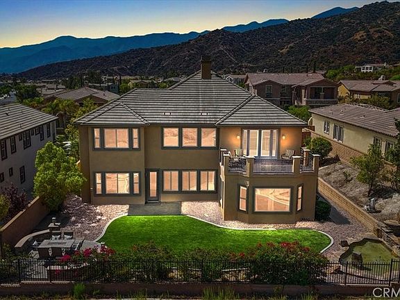 “THE RETREAT” – Gorgeous views from nearly every window and a feeling of extreme privacy await you! Located in one of the area’s premier and most desired neighborhoods, this wonderful 4,867 sqft home offers 4 bedrooms and 4.5 bathrooms on over a 1/4 acre lot. Natural light, warm finishes and an amazingly open and welcoming floor plan make this home truly special. A front courtyard and double-glass-door entry opens to formal living and dining rooms featuring beautiful, hardwood flooring, a curvilinear staircase and cathedral ceilings. An oversized family room with gas fireplace adjoins a beautifully appointed kitchen with granite counters, stainless Kitchenaid™ appliances including double-oven with convection, expansive island with breakfast counter, kitchen dining area, kitchen pantry and butler’s pantry. Completing the first floor is a powder room for guests and arguably the best feature of this home – AN ENORMOUS DOWNSTAIRS PRIMARY SUITE of approximately 1,000 sqft! This grand primary suite offers a spacious sleeping area with separate retreat with rich, custom built-in, and an ensuite primary bathroom featuring dual granite vanities, a dressing table, jetted soaking tub, walk-in shower, separate water closet with bidet, and a sizable walk-in closet with custom built-ins. This home offers a unique opportunity to age in place or for multi-generational living. The upstairs offers 3 additional bedrooms, two being junior primary suites with ensuite bathrooms, walk-in closets and private balconies. The 4th bedroom upstairs is also well-proportioned, as is a large loft/bonus area which could be easily converted into a 5th bedroom, serviced by the adjoining 4th bathroom. Completing the upstairs is a large laundry room with utility sink and storage cabinets. Other amenities include: plantation shutters throughout, custom motorized blinds, dual zoned HVAC, split, finished 3 car garage with epoxied floors, low maintenance, water-wise landscape featuring artificial turf and irrigation/drip system, mature fruit trees, and a wonderfully peaceful and serene backyard offering tasteful water feature/pond, mountain/canyon/city lights and no rear yard neighbors! Additional community amenities include walking trails, playground, sport court, picnic area, park and a 24-hour manned, secure gate access. This commuter-friendly home is close to freeways and mere minutes from many amenities including: great schools, shopping, medical centers, churches and more!
