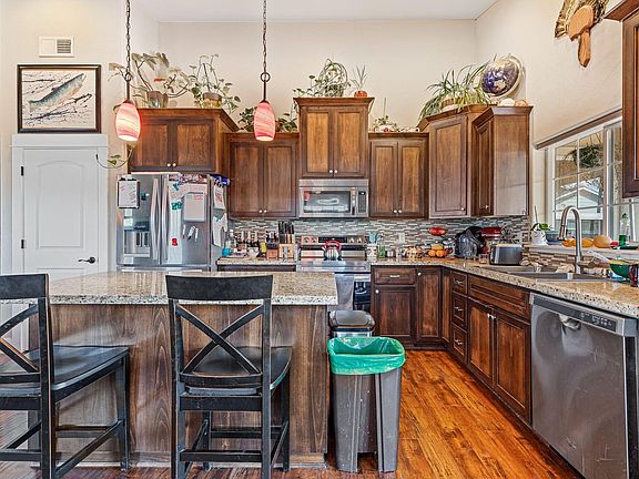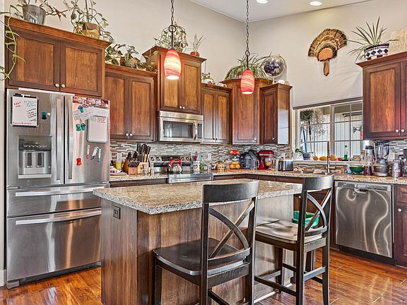 This gorgeous home built in 2015 by Tru Homes features 1489 sq. ft with 3 bedrooms and 2 bathrooms. Their is huge gated RV parking. The great room is light, bright and spacious. Gorgeous rough finished floors and wonderful open floor plan. There is an incredible amount of custom cabinets in this kitchen with granite counter tops and full wall tile backsplash. Huge granite island and large pantry. Great finishes in this home with 5 inch baseboard and doors are trimmed with 3.5 Inch casing and 4.5 Inch architrave tops. The baths feature granite counter tops, tile floors and custom Backsplashes. Large Interior Laundry Room with Tile Floors. Outside you will find an amazing area to entertain with new stamped concrete and gorgeous tree-trunk cement gas fireplace. There are also raised beds and mature landscaping. Beautiful backyard and home must tour.