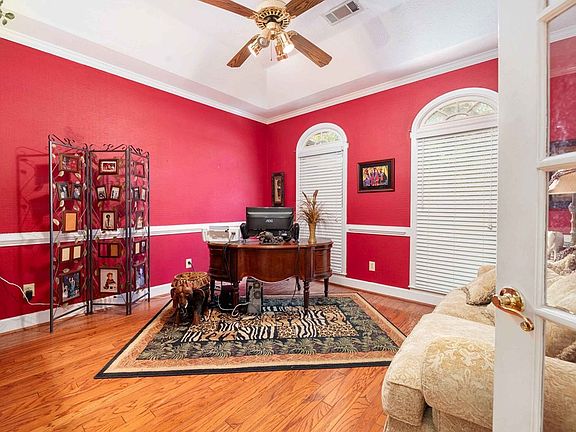 This immaculate well-kept custom built beautifully landscaped home is a must see. 3 large bedrooms, 3 full bathrooms. Large walk-in closets in each bedroom. large foyer, study room, separate living room and formal dining room, sitting area with fireplace off the kitchen, screened in large back patio, hardwood flooring and crown molding throughout the home. Huge Master bedroom/bathroom/very large walk-in closet, jacuzzi jet tub and separate shower. Double car garage with 2 storage rooms. Completely bricked home.