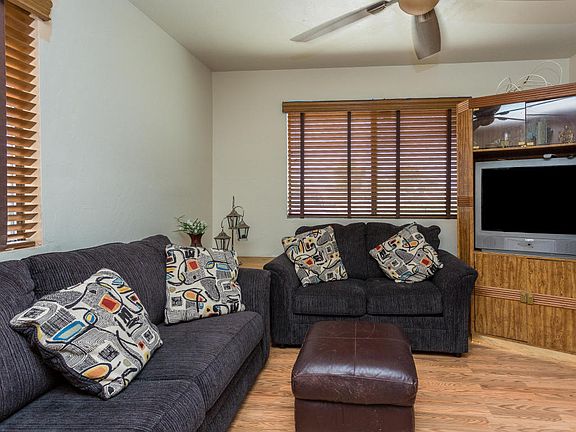 Great location, walking distance to Mountain View Park which has pool, dog park, soccer & baseball fields. Prescott Valley has its own Hospital, Event Center for sports and entertainment and a variety of restaurants. Owner states they watch the 4th of July Prescott Valley fireworks from their front yard. This 3 bedroom, 2 bath home is perfect for the growing family. Garage was converted to den with permits. Home features fireplace with pellet insert. Two storage sheds in backyard.