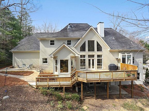 Must see magnificent wooded retreat in coveted Grogan's Bluff swim/tennis community. Soaring view of trees and birdlife from family room atrium will inspire you! Open floor plan with high ceilings and abundant natural light. Gourmet kitchen with custom granite island is made for foodies, family and friends. Large Master on main with spa-worthy bath. Two fireplaces, in home office and family room. Three bedrooms up, large terrace, and wide deck complete this executive home. 400 provides easy access to downtown Atlanta and airport. Your very own Hummingbird Hideaway!