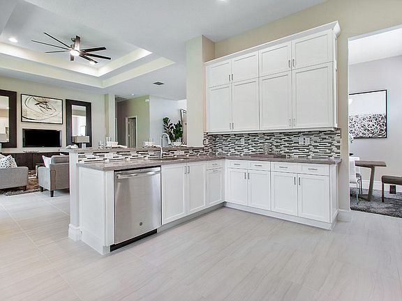FREE Furniture included in this move in ready home. Very popular open floor plan with 2 Masters plus Den and 2 1/2 bath, spacious great room. Gourmet Kitchen with stacked upper cabinets, upgraded Quartz countertops and glass tile full backsplash. Upgraded 24' x 24' Porcelain tile in main floor areas. Designer bathrooms with Quartz countertops, frameless/seamless shower enclosures and mirrors to ceiling over vanities. Faux blind and designer ceiling fans throughout. Wall to wall covered screened patio. Private backyard. Valencia Bay has an 8-acre waterfront recreation center that includes a 33,000 SqFt clubhouse 2019-10-28