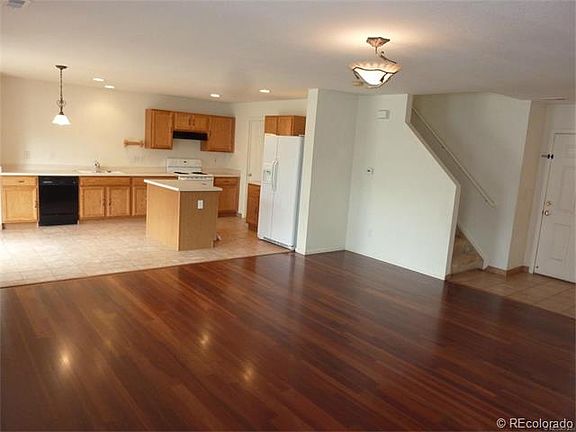 This spacious townhome is one of the larger floorplans that features tile and Brazilian cherry hardwood floors (just refinished) on the main level! Backing to lovely greenbelt and central air are just a few features. Out back, you'll find a spacious patio and sprinkler system. Cherry Creek schools! Come check it out today! Please remove shoes when viewing property!!
