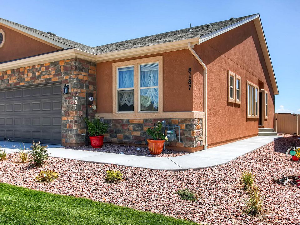 Bright, airy and beautiful Ranch style patio home - barely 6 months old and still under builders warranty! It features a Great room with vaulted ceiling, laminate wood floors, a cosy fire place and walk out to private fenced backyard and patio. Upgraded kitchen has granite counter tops, s/s appliances, walk in pantry and bar. 3 Bedrooms and Office. Large family room in the finished basement. Conveniently located near Powers coridoor with shopping, entertainment and restaurants and easy access to Woodmen and I-25.