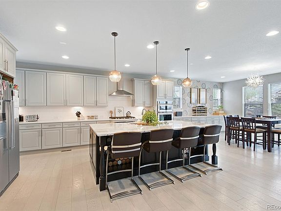 Whispering Pines home with too many upgrades to list on .25 acre corner lot backing to open space with covered deck! Enter into the Great room with high ceilings, and instant views out the windows. Multiple living spaces throughout the home with a 5th bedroom (or large office) flex space also available on top floor. There is even adequate space in basement for converting to 6th bedroom and more living space if desired. The large deluxe kitchen space features upgraded granite, double ovens, gas cooktop, stainless appliances, large island and separate dining area. All bedrooms have ensuite baths and walk-in closets. Recently renovated, basement office/studio also creates a great private nook for being productive. Enjoy the many community walking paths to the Sampson gulch and piney creek trail system, or walk to the community clubhouse and swimming pool. Easy access to 470, Southlands, DIA, and DTC. Furniture also available for purchase. This home is priced to sell quickly.