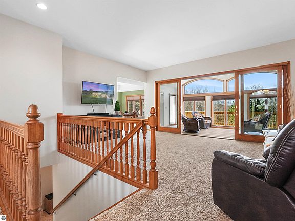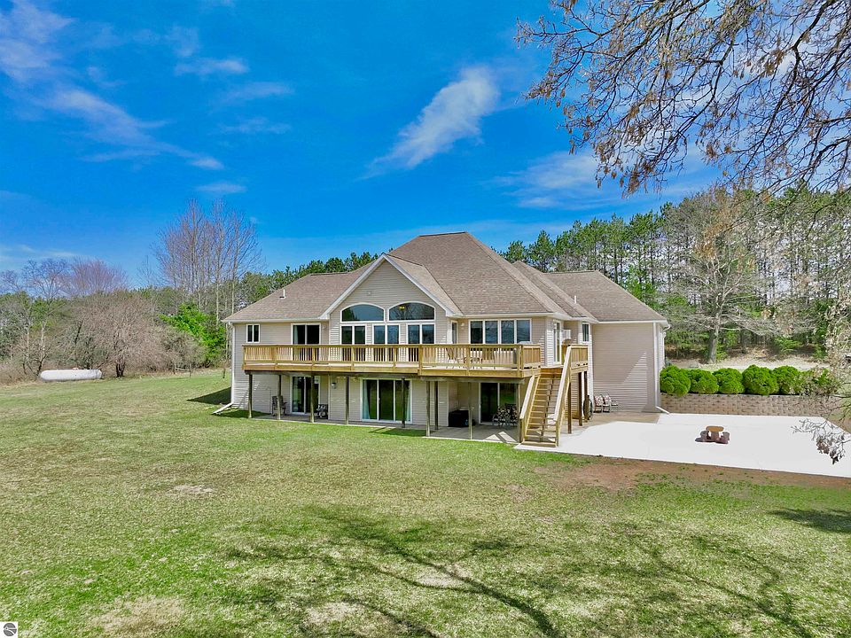 This stately 4 bedroom, 3 bath home boast a country feel on 2 acres, yet is only minutes from Downtown Cadillac and the M-115 and US 131 interchange. Inside you will find 3200 sq ft of finished living space, with 10' ceilings in the living room area, and an integrated four season room. There is plenty of west facing glass overlooking the countryside and catching those sunsets! The island kitchen is filled with natural light from the large windows and a slider out to the new deck. The large primary bedroom also has a slider leading out to the deck. The lower level features a sizeable family room area with a wet bar, two more bedrooms, of which one is large enough to be a many suite, and another full bath. Outside you will discover a brand new concrete patio area that is large enough for a basketball court. The 3 car garage is fully finished and offers plenty of storage. If you are looking for a sizeable and well constructed home that is close to everything, but not in an HOA, then come check this one out!