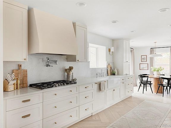Welcome home to a picture perfect one of a kind home in the highly coveted neighborhood of Columbine Knolls South II. This beautiful home has been fully renovated from top to bottom with high end designer finishes that were hand selected by @bloomandbabe. The open floor plan allows for entertaining that seamlessly flows into the large back yard. Main floor boasts a chefs kitchen complemented by Monogram appliances and quartz countertops. Also on the main floor there is a dedicated formal dining room, mudroom, and two large living spaces with vaulted ceilings with beautiful beams. Walking up stairs guided by custom steel and oak railings, you will find the primary bedroom with its own dedicated 5 piece on-suite bathroom, along with 3 other large bedrooms that share a gorgeous full bathroom with double vanities. Gorgeous white oak herringbone flooring throughout main and upper floors adds warmth and ease of living. Basement is fully finished with a bathroom containing a steam shower, bedroom, and large open area for games and activities. This home needs nothing and is ready for the most discerning buyer.