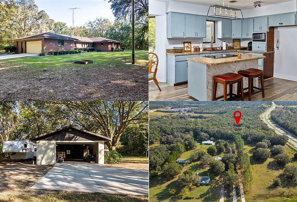 Awesome 4 bedroom 2 1/2 bath brick home nestled on 6.5 secluded/ wooded acres. This custom-built home 2272 sq.ft. of living area, 533 sq.ft. attached garage, 141 sq.ft. utility/ workroom, and a 250 sq.ft. screen porch for a total square footage (under roof) of 3196.The master bedroom is 15x13 with a split bathroom and a 9x5 walk in closet. The split guest bathroom is easily accessed from the three other bedrooms. The spacious family room has built in cabinet/bookshelf. The 20x14 living room also has built in cabinet/bookshelf/entertainment center with an arched hearth which houses a Fisher Grandpa Bear wood stove. The attached dining room is highlighted by wooden spindled half-wall and wainscoting. The kitchen and breakfast nook have abundant cabinet and pantry space. New laminate flooring in the main living space, newly painted cabinets in the kitchen and newer appliances. You will love the peace and quiet of this homestead. Easy access to Ocala, The Villages and Belleview.