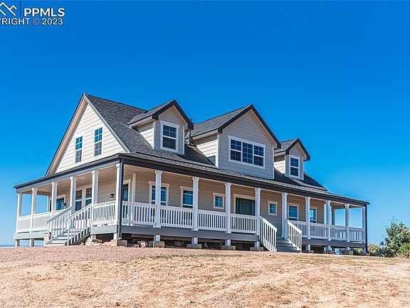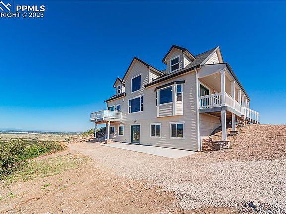 Rare opportunity to own the most phenomenal views in Franktown in this comprehensively remodeled contemporary mountain farmhouse! Outstanding wide-open design, loaded with luxurious amenities, superb functionality & unmatched beauty. The expansive foyer welcomes you into the extraordinary Great Room with stunning unobstructed Front Range & Pikes Peak views, stacked stone fireplace with custom mantel & symmetrical lighted alcoves. Flow seamlessly into the bay-window set dining and the extravagant kitchen with massive soapstone island, custom cabinetry with exotic granite, gas cooktop, wall oven & microwave. Around the corner you’ll love first of two laundry rooms, complete with cabinetry & separate entrance. Even the main-level powder room is decked with custom wall panels & exquisite vanity. The palatial primary suite includes 9 ft ceilings, large private deck, huge walk-in closet, & extravagant bathroom including epic dual-head rainfall shower, soaking tub, gorgeous navy double vanity, surrounded with a light-filled bay window. Upstairs includes two large bedrooms with incredible views, spacious loft overlooking the Great Room with endless possibilities, and a lavish full bath. All set to move-in and thrive--all NEW: front & rear decks, roof, interior paint, carpet, kitchen, appliances, bathrooms, fireplace, outbuilding & more! True separate living quarters with full-functionality in basement including full kitchen, washer & dryer, two bedrooms, living area & gorgeous bathroom, all through a private entrance with new concrete patio. Superb 35-acre lot with fenced pastures, two large loafing sheds, large chicken coop, two storage sheds, and brand new 48x42 metal outbuilding with 12ft RV entrance door, 2x10ft doors, power, LED lighting, 220V-50amp & garage door openers. The ultimate in seclusion & privacy, surrounded by 3200 acres of Harmony Ranch, enabling absolutely peace, quiet & the brightest starlight, all with close access to Castle Rock, Parker, & the Springs.