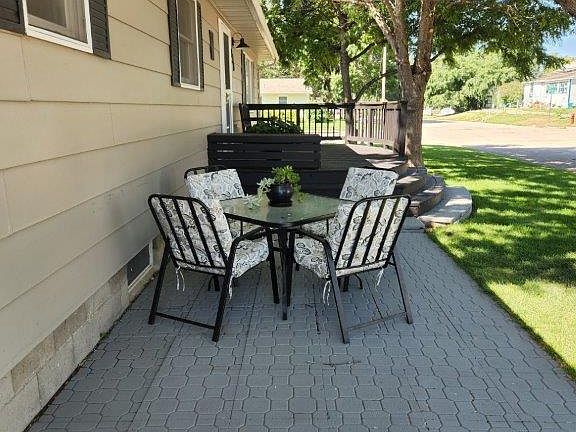 This spacious home on a corner lot has many updates! Walk in the front door to the completely updated breezeway between the garage and the house, with a sliding door to the backyard concrete patio and completely redone grass yard. The breezeway offers a place for boots and coats as well as a great place for entertaining, with a TV and access just off the kitchen! Step into the open kitchen, dining and living room on the main floor, with three bedrooms on the other side of the house along with a full bath and a large master bathroom. Laundry washer and dryer are located in the hallway here as well. The basement offers another large living space as well as a fourth bedroom, recently updated full bathroom, bonus room for exercise, play or office, and additional storage space. The attached two stall garage has a pellet stove, and insulated walls and ceiling. The exterior has many improvements as well, including a new concrete driveway, stained front deck and concrete sitting area. This place is move-in ready! Call for a showing today!