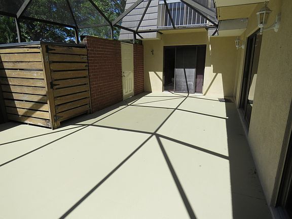New roof ready to be installed and has been paid for by owner. Full screen enclosure, nearly new fence with shed with new roof. Tile floors down stairs, Partial lake view from bedroom. Steps to lake and walking trail. Parking very convenient. Community pool, tennis, playground, walking trail, pickle and racquet ball all included in HOA fee. Close to I-95 and turnpike access and short drive to Publix. Overall very convenient location.