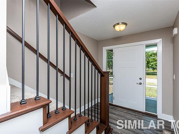 This family-friendly 2-story home has an open living area layout that features a spacious kitchen, including quality cabinets, sizable pantry, and breakfast nook. This design is perfect for entertaining family and guests. The upstairs master bedroom has a walk-in closet with custom 2-tier shelving and a master bathroom with a dual vanity. With an upstairs laundry, this home also features 3 additional bedrooms with spacious closets and carpeted floors. The home has dual zone to help with even heating and cooling between floors. The windows have custom blinds.