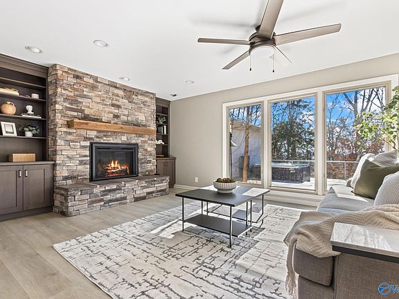 Contemporary living blends beautifully with traditional elegance in this highly desirable Jones Valley home. The single-story plan wraps around an expansive private deck with woodland views. This tastefully updated, move-in ready, brick home offers high-end amenities added for comfort, security and ease of upkeep. Gracious homes line the street where this hilltop lot is surrounded by mature trees for shade and privacy. Convenient to top schools, downtown, shops, and hospitals. The open natural light-filled layout features huge windows. A gourmet kitchen with stainless steel appliances, granite countertops, breakfast bar adjoins a Great Room with stone fireplace.