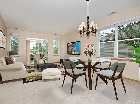 This Active Adult Community offers so much! Clubhouse, Pool, Exercise Room & more! This 2 bedroom corner unit offers plenty of natural light. Just off the living room, through the sliding glass door is a private, concrete patio. Inside there is ceramic flooring and hardwoods in the kitchen. The ceilings are 9 ft., the upgraded cabinets are 42", there are recessed lights and a spacious eating area surrounded with windows. There are 6 panel doors and blinds throughout. Both full bathrooms have ceramic flooring & the master suite has a huge walk-in closet. The generous laundry room is complete with a laundry tub, washer/dryer, shelving and a convenient door to the 2 car attached garage. You will feel comfortable and at home!